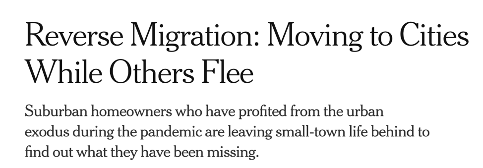 Data is putting the lie to the concept that “everyone is leaving the City”. Many of those who moved out are now regretting it. Employment is experiencing a surprisingly strong rebound. The net exodus of people from the city is officially over. And the vaccine rollout is coming on strong.